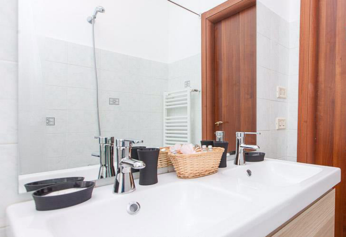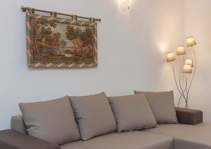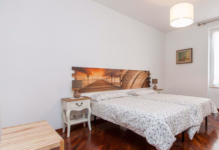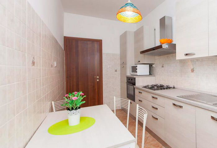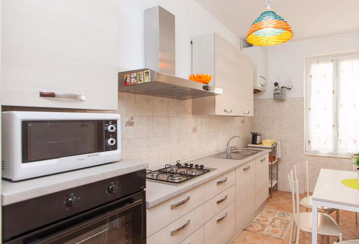 La décoration de style moderne, l'appartement se compose d'un séjour lumineux avec canapé-lit double, d'une chambre double, d'une chambre avec deux lits simples, d'une cuisine entièrement équipée et d'une salle de bains avec double lavabo et baignoire.