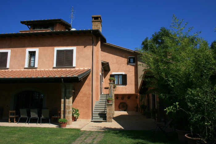 Charmante villa de vacances située en position panoramique sur les collines verdoyantes recouvertes de noisetiers, vignobles et oliveraies à 292 m d'altitude a proximité de l'Oasis WWF de Corchiano. La maison se trouve dans la Tuscia méridionale à seulement 60 Km de Rome, (aisément accessible en moins d'une heure grâce aux excellents services des chemins de fer qui relient cette zone à la capitale) A la périphérie du village de Corchiano, que on peut rejoindre aussi à pied. Autour de la villa, un vaste espace verdoyant équipé de meubles de jardin en marge duquel a été installée une belle piscine (dim. m 6 x 15, profondeur 0,80 - 1,5 m). La disposition particulière des espaces internes offre la possibilité d'accueillir des groupes d'amis qui souhaitent passer leurs vacances en compagnie tout en maintenant la propre indépendance. A la disposition des hôtes Tv satellite, four a bois, barbecue