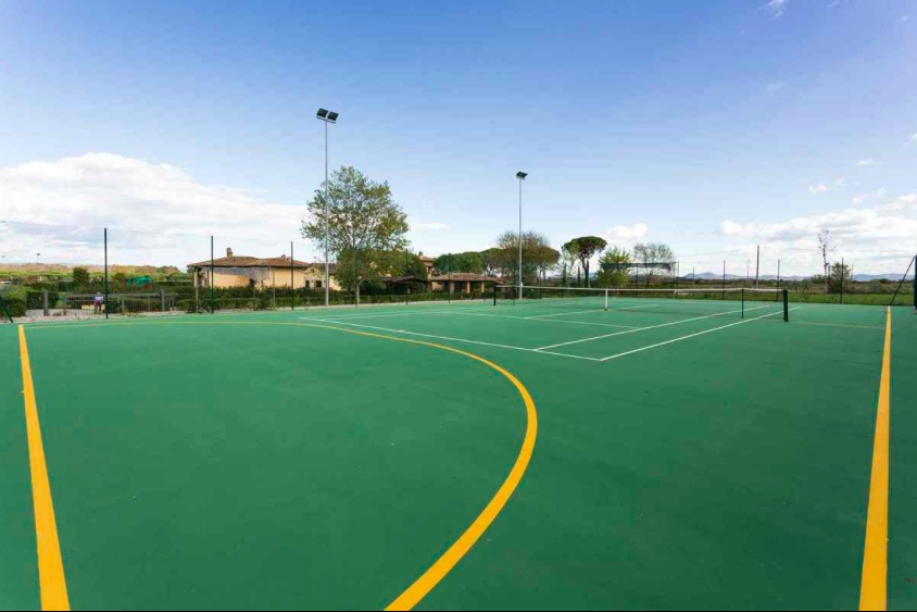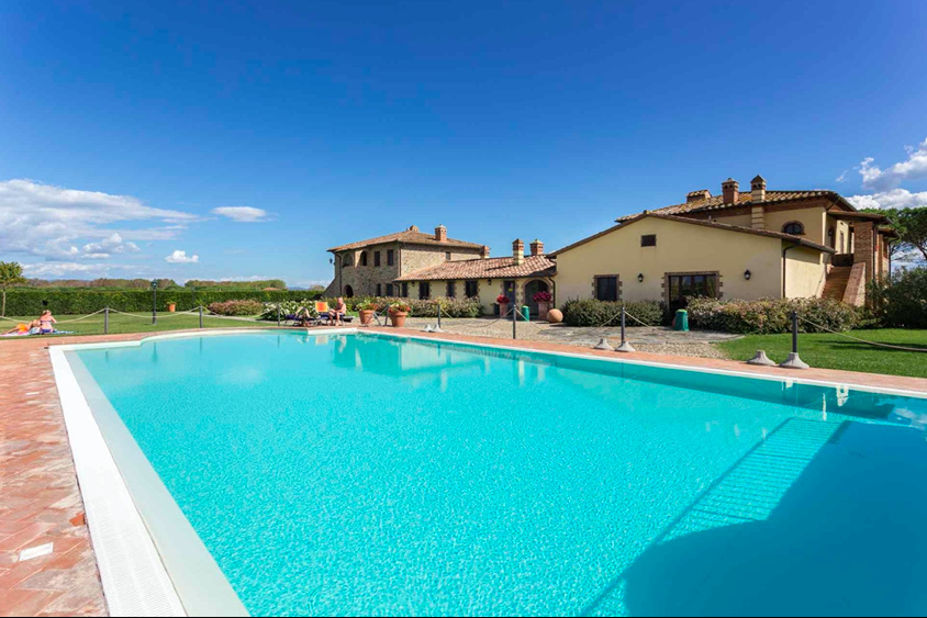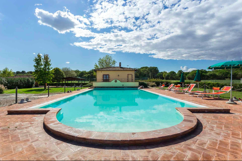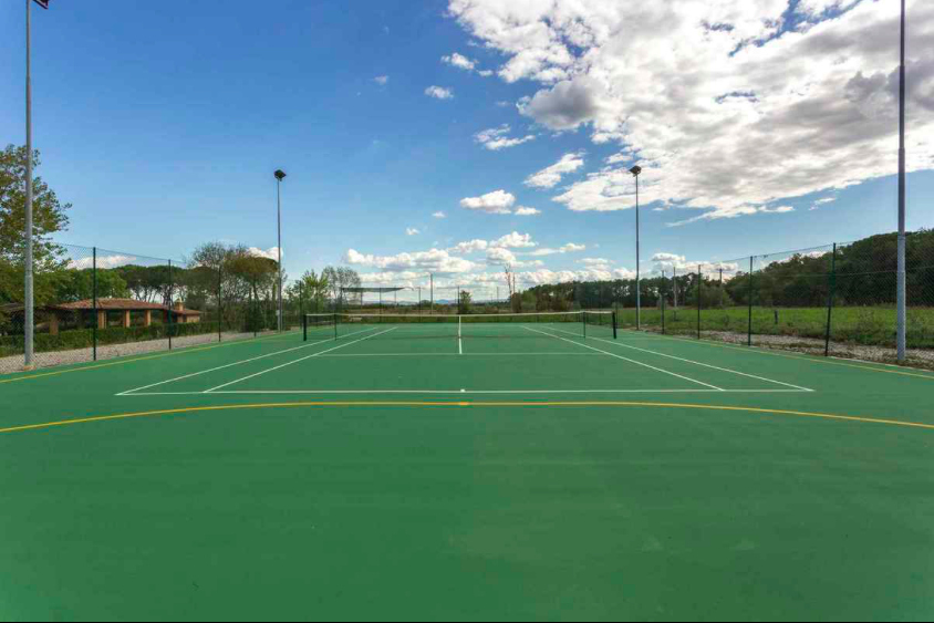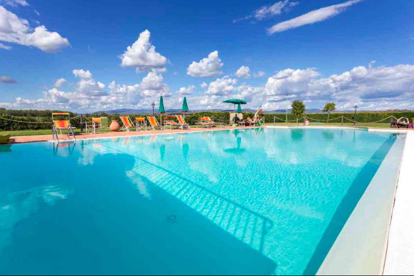 En face se trouvent un grand jardin avec pinède, une piscine (8 x 17 - ouverte de mai à octobre) et un gazébo avec four en pierre, idéal pour les petits déjeuners en plein air ou les délicieuses grillades en compagnie des autres hôtes. L´agritourisme possède également une grande salle commune avec cheminée dotée de tout confort où vous pourrez vous retrouver ou lire en tranquillité. Vélos à disposition des hôtes pour rejoindre le lac ou pour de longues excursions en empruntant la piste cyclable située à 700 mètres de l´agritourisme. A proximité : Tuoro, S. Feliciano et Passignano, charmants bourgs de l´Ombrie d´où vous pourrez partir en bateau pour rejoindre les îles du Lac. Castiglione del Lago (3 km), Pérouse (40 km), Arezzo (45 km), Autoroute A1 (22 km), sortie Valdichiana.