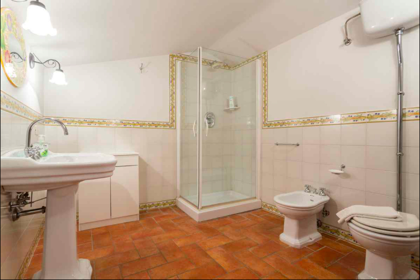 App. PESCE GATTO (6+2 pers.) 1er étage & mandarde: 100 m2 - 5 pièces 1er étage: séjour avec canapé-lit à 2 places (grand lit) + cheminée + coin cuisine (lave-vaisselle), 2 chambres à grand lit, 1 sdb avec douche, 1 sdb avec baignoire, air conditionné, Tv avec satellite, espace en plein air Mansarde: 1 chambre à grand lit, 1 sdb avec douche.