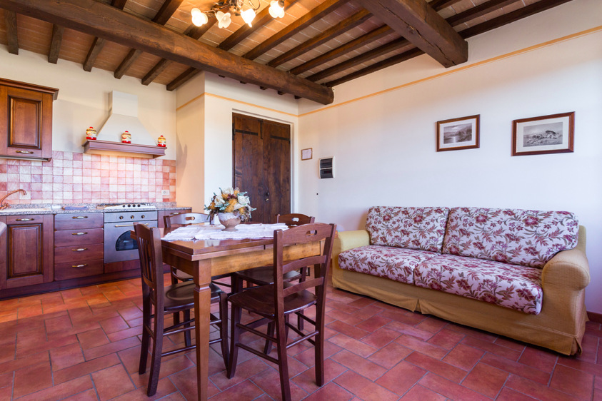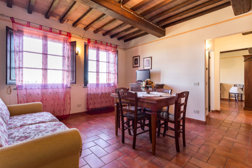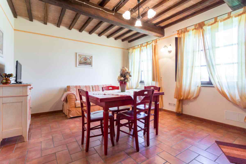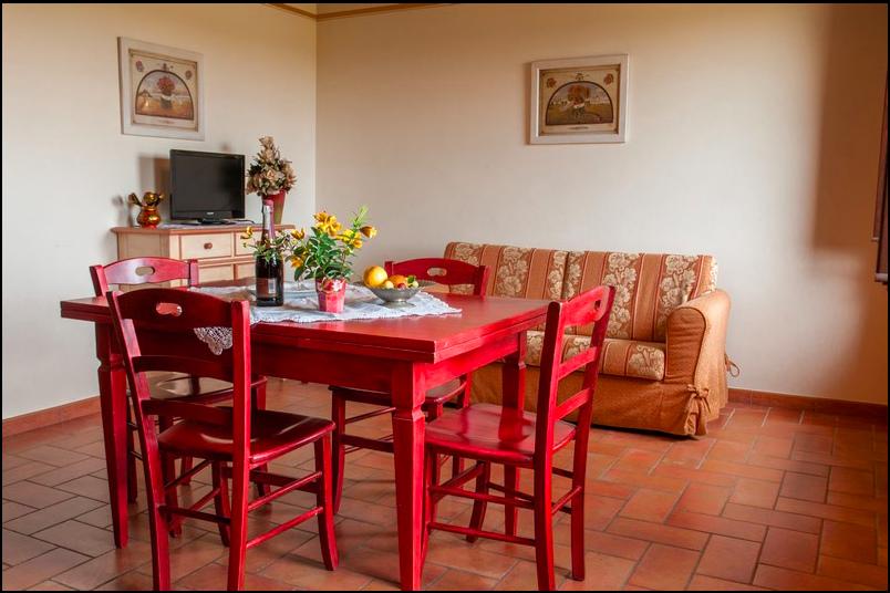 Complètement rénové en 2005, l´agritourisme est composé de deux maisons en pierre unies par un édifice au crépi jaune pastel avec petite cour. Nous sommes en pleine campagne autour du lac Trasimeno (Castiglione del Lago à 3 km) ; séjour idéal pour retrouver paix et tranquillité au contact avec la nature. Aménagés avec des meubles d´antiquité, les 13 appartements sont très confortables. Avec les couleurs soutenues des poutres en bois et du plancher en terre cuite qui se marient bien avec les tonalités plus douces des murs, des rideaux et des lits, vous vous sentirez tout de suite à l´aise.