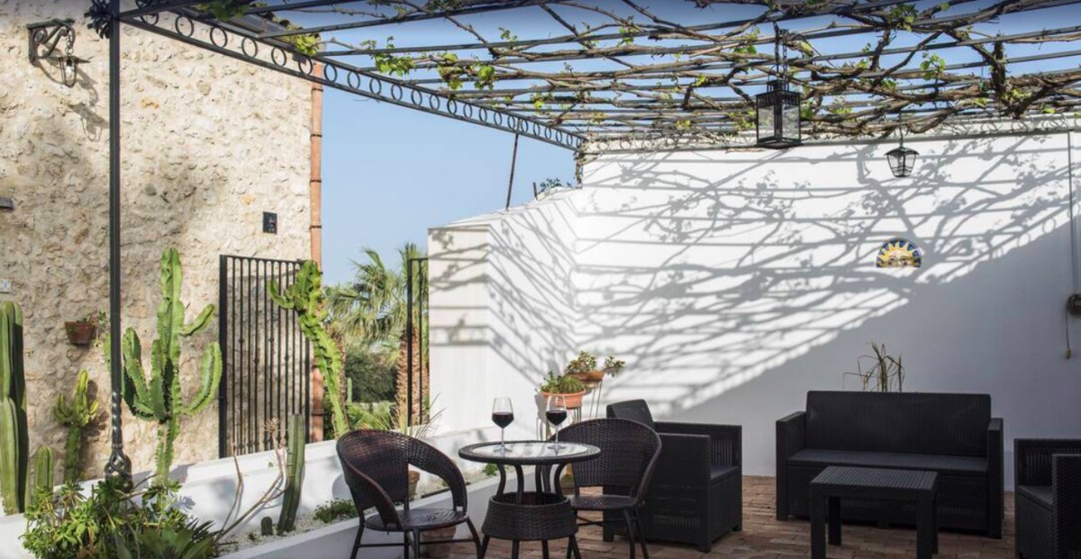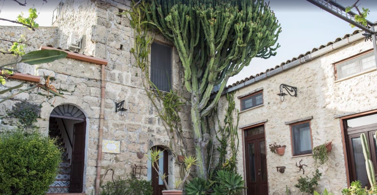 Ancien hermitage des Franciscains, cet agritourisme fut acquis à la fin du XIXème siècle par Paolo Lauria, ancêtre des actuels propriétaires. Ce n´est qu´en 1999 que ce ´ baglio ´ du XVIIIème siècle, typique maison sicilienne avec cour intérieure a été restauré pour devenir un bel agritourisme avec piscine (6 x 12 ouverte de juin à septembre) et 6 chambres. Les propriétaires ont aménagé les chambres avec goût et meubles d´ ´arte povera´. Vous retrouverez en effet la chaleur de la pierre des extérieurs jusque dans les intérieurs: pans de murs aux pierres apparentes, plafond aux poutres apparentes, voûtes harmonieuses, etc…