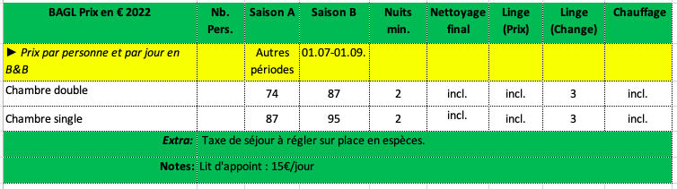 par personne et par nuit avec petit déjeuner