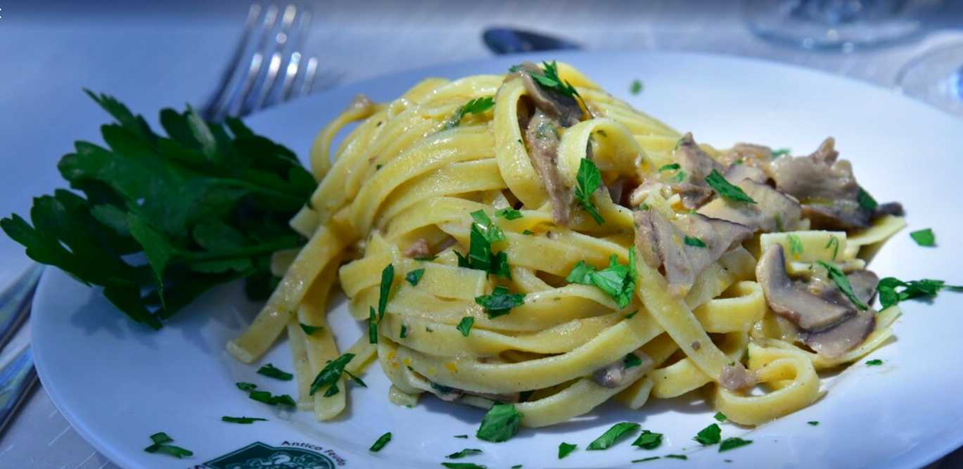 Au restaurant de la ferme, avec arcs en brique et murs en pierre, vous pourrez déguster de bons plats préparés à base de produits de la ferme et du terroir (champignons, châtaignes, légumes et ricotta).