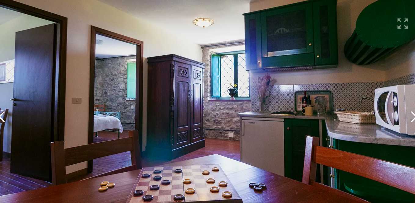 Suite PASSO RUVOLO (6+2 pers.) 1er étage: 80 m²- 4 pièces - séjour avec canapé-lit à 2 places (grand lit), 3 chambres à grand lit ou à 2 lits de 90, 1 sdb avec douche.