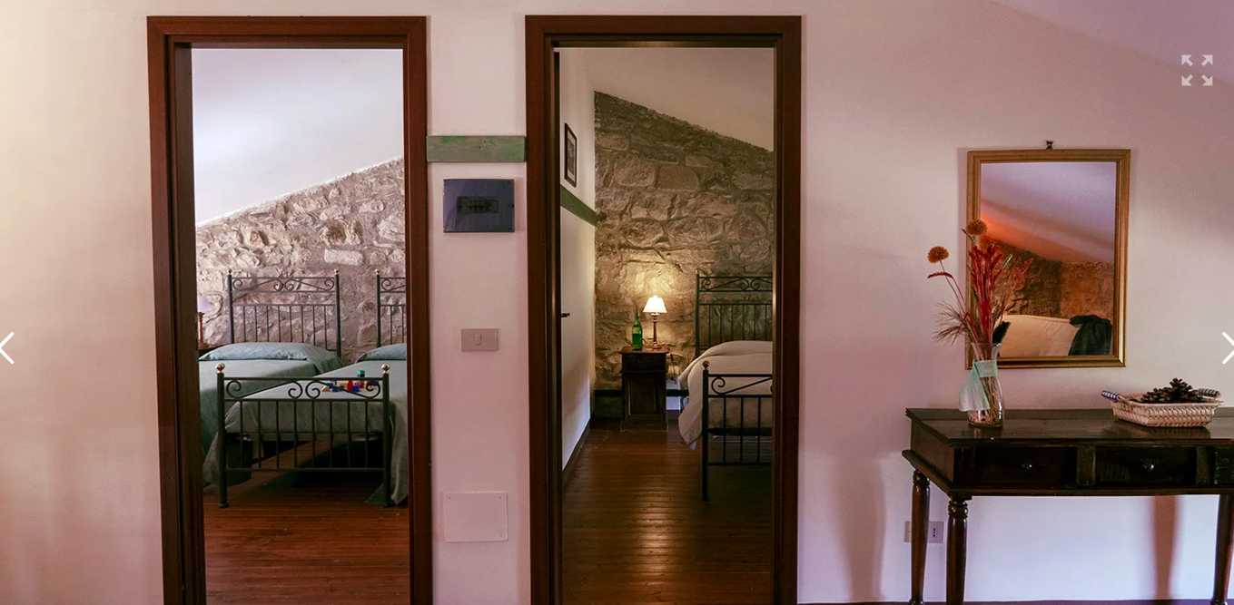 Suites SAN GIULIANO (4+2 pers.) 1er étage: 60 m²- 3 pièces - séjour avec canapé-lit à 2 places (grand lit), 2 chambres à grand lit ou à 2 lits de 90, 1 sdb avec douche.