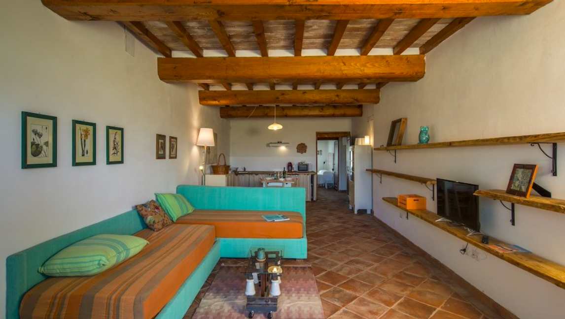GRILLO : se compose d’un séjour avec cheminée et canapé, un coin cuisine totalement équipé (vaisselle, réfrigérateur avec congélateur, machine à café, Tv, ventilateur) + 1 chambre double + 1 chambre triple et une salle de bains avec douche et sèche-cheveux. La chambre triple mène à une terrasse panoramique meublée.