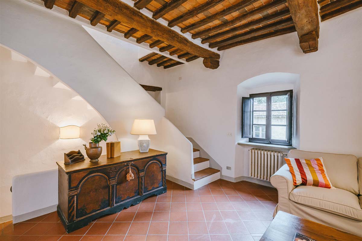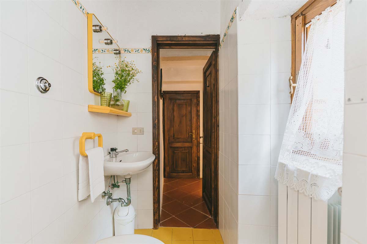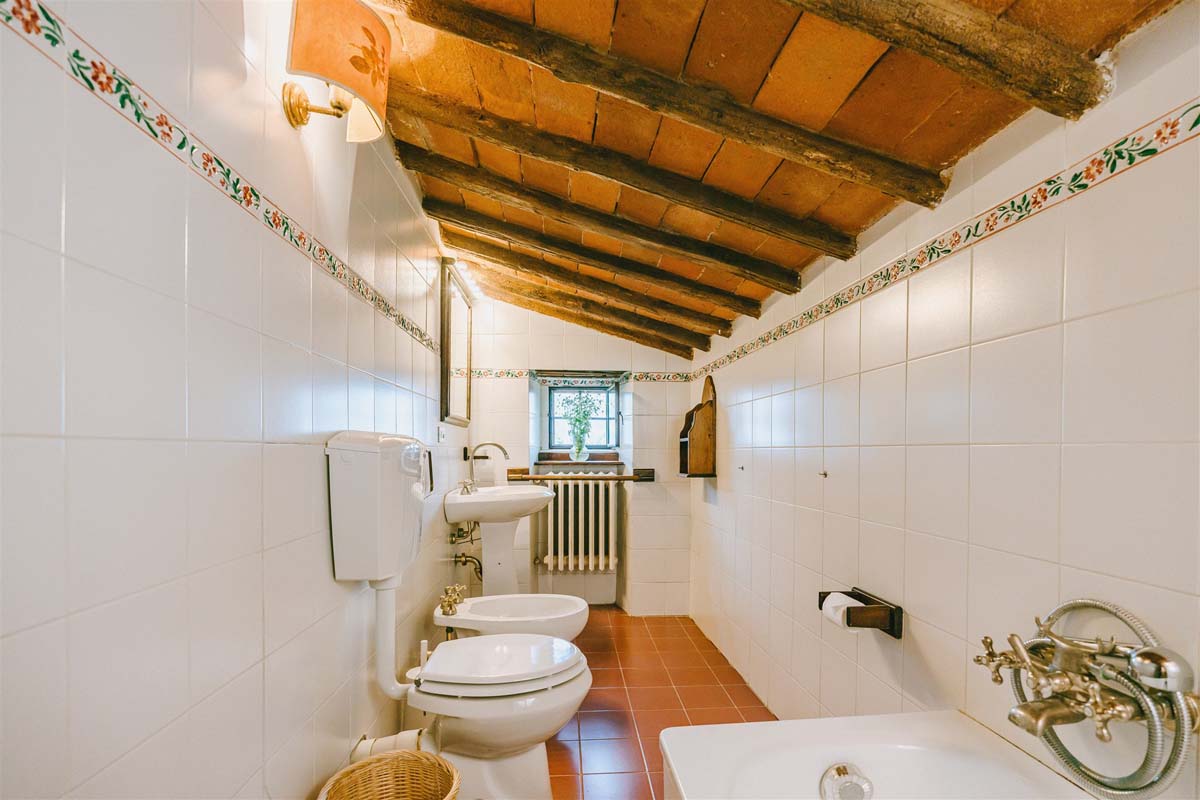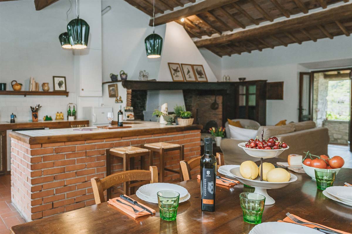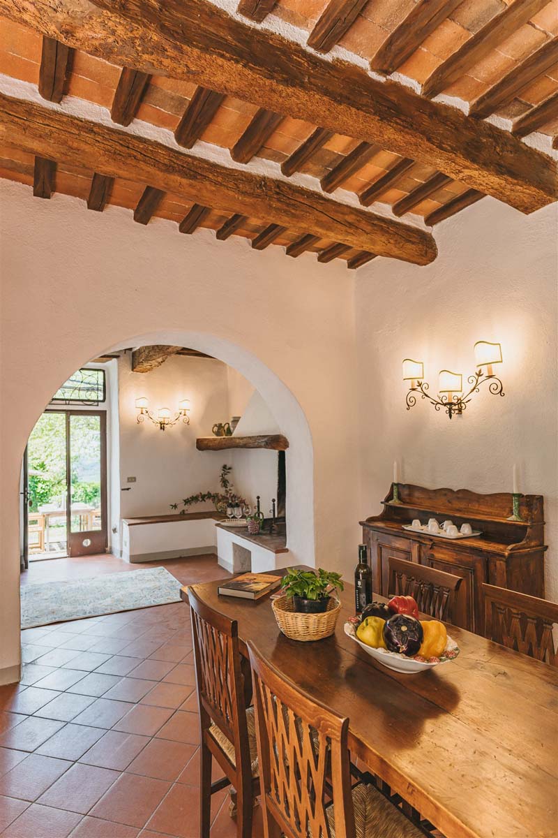 COLONICA (4 pers) : maison indépendante : 100m2 – 6 pièces – 1er étage : un escalier extérieur mène à un joli balcon meublé où se trouve l’appartement. La porte d'entrée s'ouvre sur une grande cuisine entièrement équipée, un coin repas et un séjour avec une cheminée toscane classique, Tv, wi-fi gratuit, lave-vaisselle, lave-linge. Un long couloir avec des carreaux de terre cuite traditionnels mène aux 2 chambres doubles et 2 salles de bains avec douche. Juste en dessous du balcon se trouve une petite terrasse meublée pour vos dîners en plein air devant le four à bois traditionnel. COLONICA et LOGGETTA peuvent être réservées ensemble pour les groupes jusqu’à 6 personnes.
