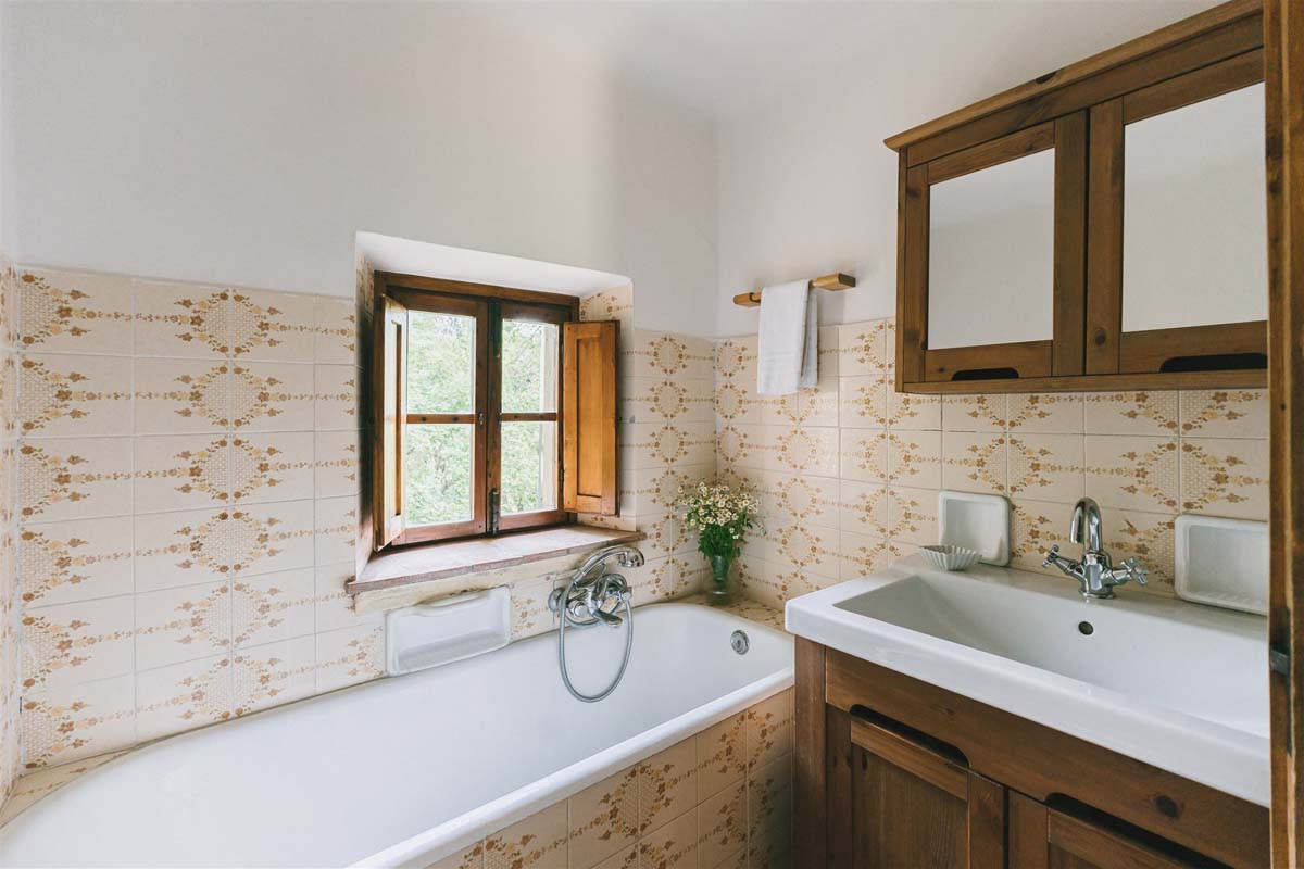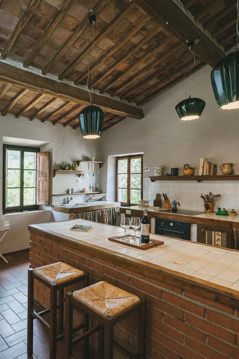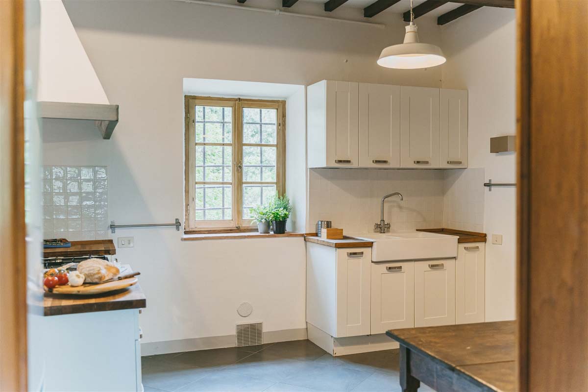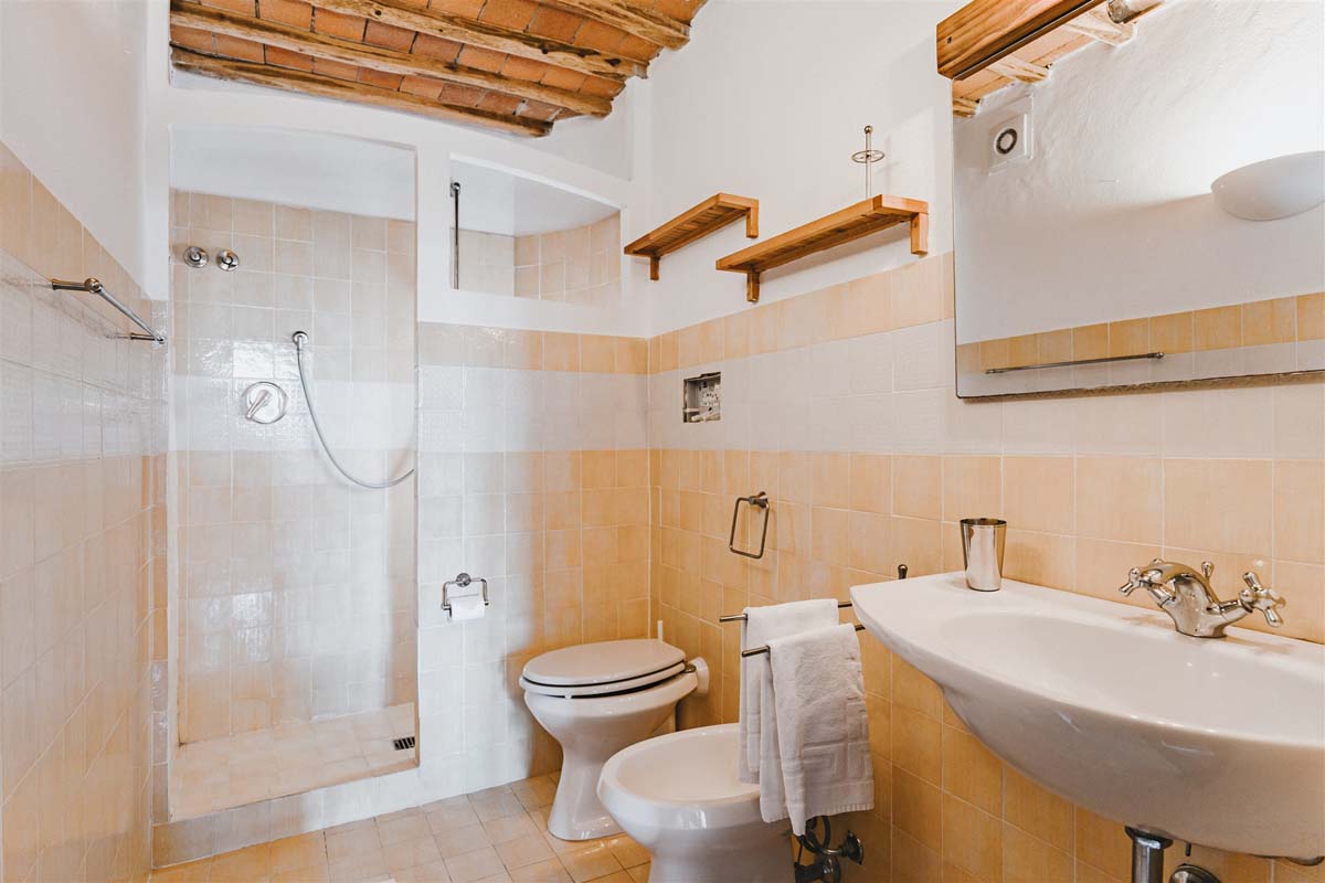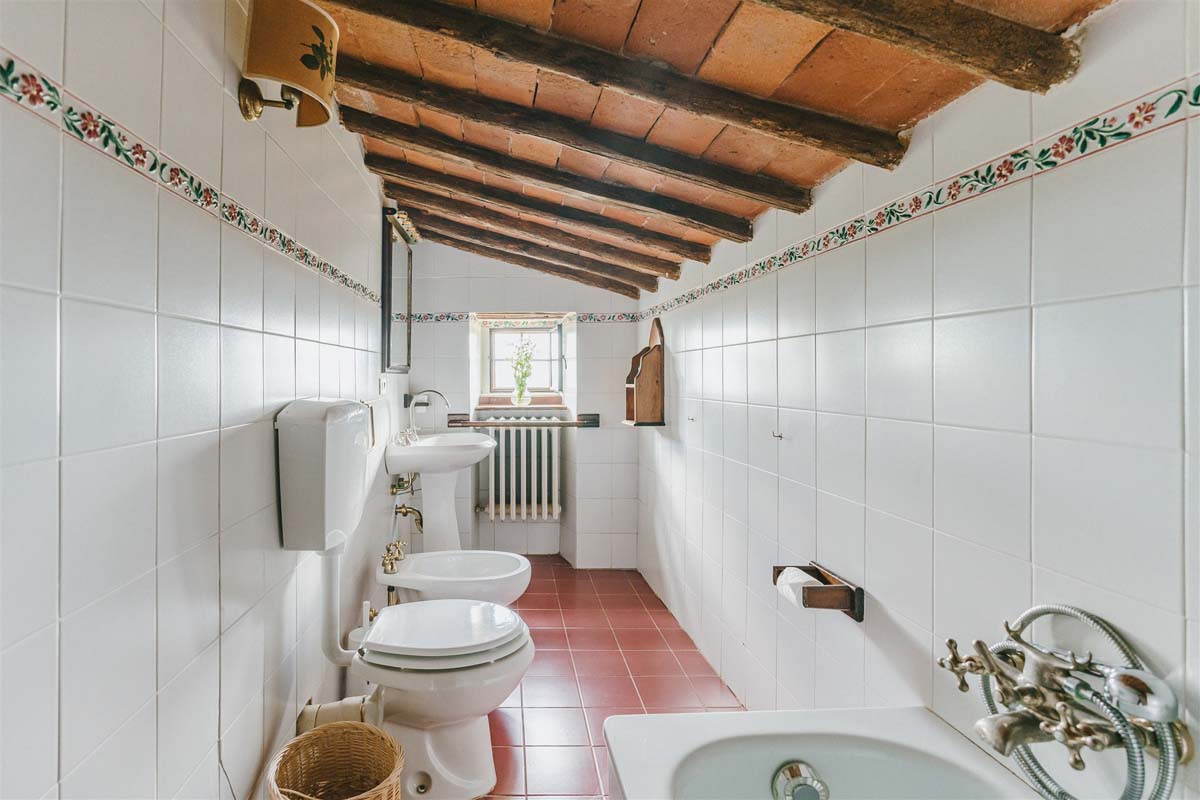 COLONICA (4 pers) : maison indépendante : 100m2 – 6 pièces – 1er étage : un escalier extérieur mène à un joli balcon meublé où se trouve l’appartement. La porte d'entrée s'ouvre sur une grande cuisine entièrement équipée, un coin repas et un séjour avec une cheminée toscane classique, Tv, wi-fi gratuit, lave-vaisselle, lave-linge. Un long couloir avec des carreaux de terre cuite traditionnels mène aux 2 chambres doubles et 2 salles de bains avec douche. Juste en dessous du balcon se trouve une petite terrasse meublée pour vos dîners en plein air devant le four à bois traditionnel. COLONICA et LOGGETTA peuvent être réservées ensemble pour les groupes jusqu’à 6 personnes.