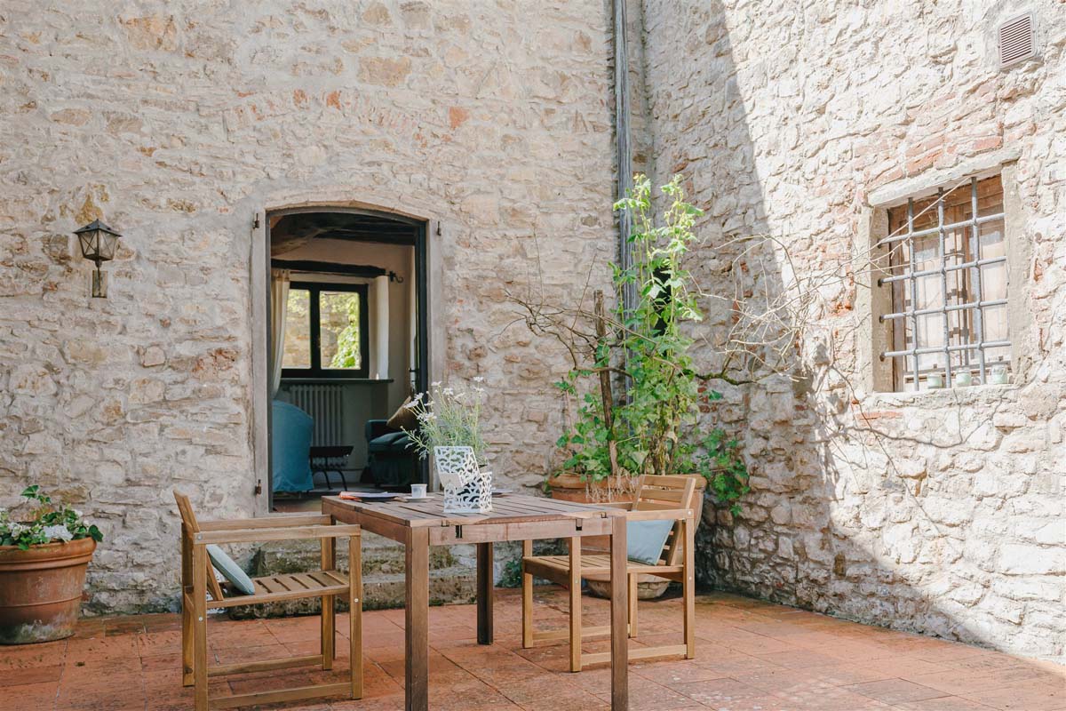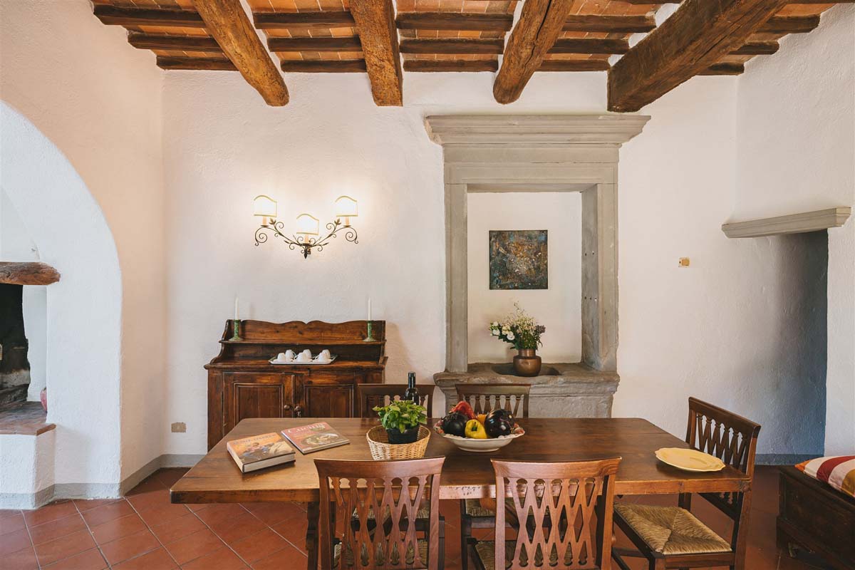 Un village toscan typique, construit au XIIème siècle, où vous pourrez passer des vacances reposantes entouré des vignobles les plus prestigieux de la région de Chianti (sa tour de guet s’élève pour protéger les colons et leurs terres). Aujourd'hui, est le refuge idéal pour des vacances de rêve en Toscane, avec ses grands jardins privés, sa piscine panoramique (6x13m) bordant une ancienne oliveraie aux vues imprenables, offrant en plus des senteurs et des couleurs de roses et de lavande, de petits espaces caractéristiques, tels que l’ancien four à bois, l’ancienne loggia et les pergolas ombragées. À partir de la structure originale, des appartements accueillants de différentes tailles ont été créés. Meublés avec des meubles anciens et une attention soignée aux détails, chaque appartement dispose également de son propre espace vert équipé pour la vie en plein air. La propriété comprend plus de trente hectares de bois, de vignes et d'oliviers à partir desquels est produite l'huile d'olive que les hôtes pourront déguster directement sur place, mais aussi et surtout la possibilité de profiter de l'atmosphère de ce paysage unique que Léonard de Vinci (en son temps) a longtemps expérimenté dans ces lieux, en les immortalisant en toile de fond de ses célèbres tableaux. L’accès à l’agritourisme se fait à travers 700 mètres de route non asphaltée.