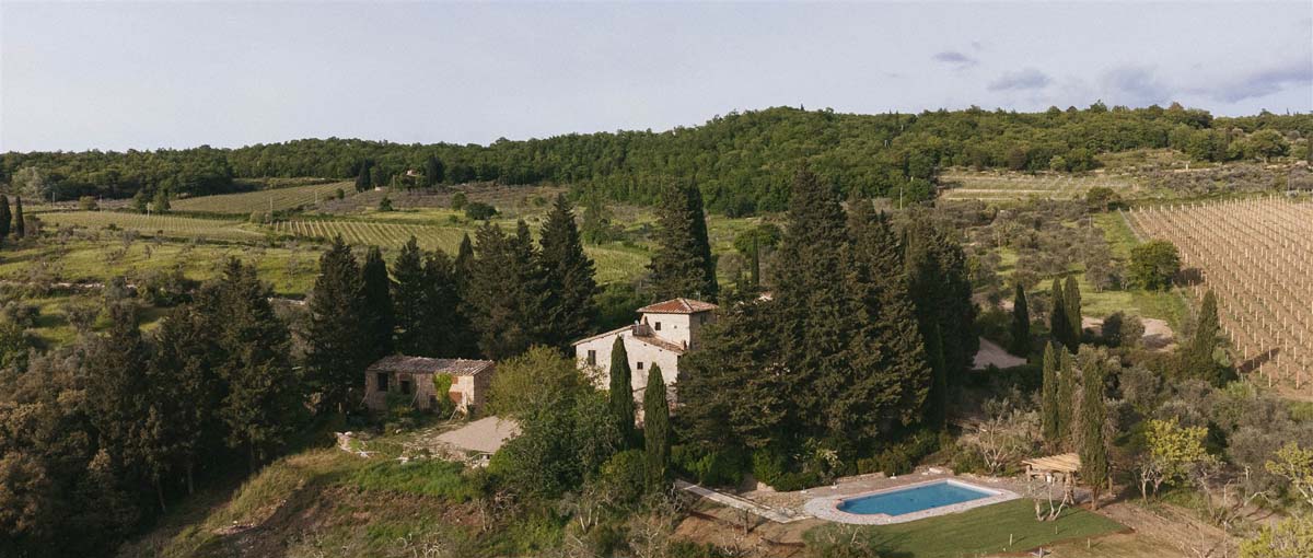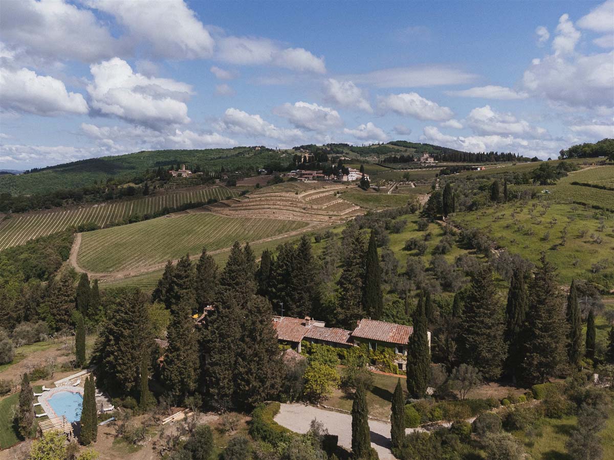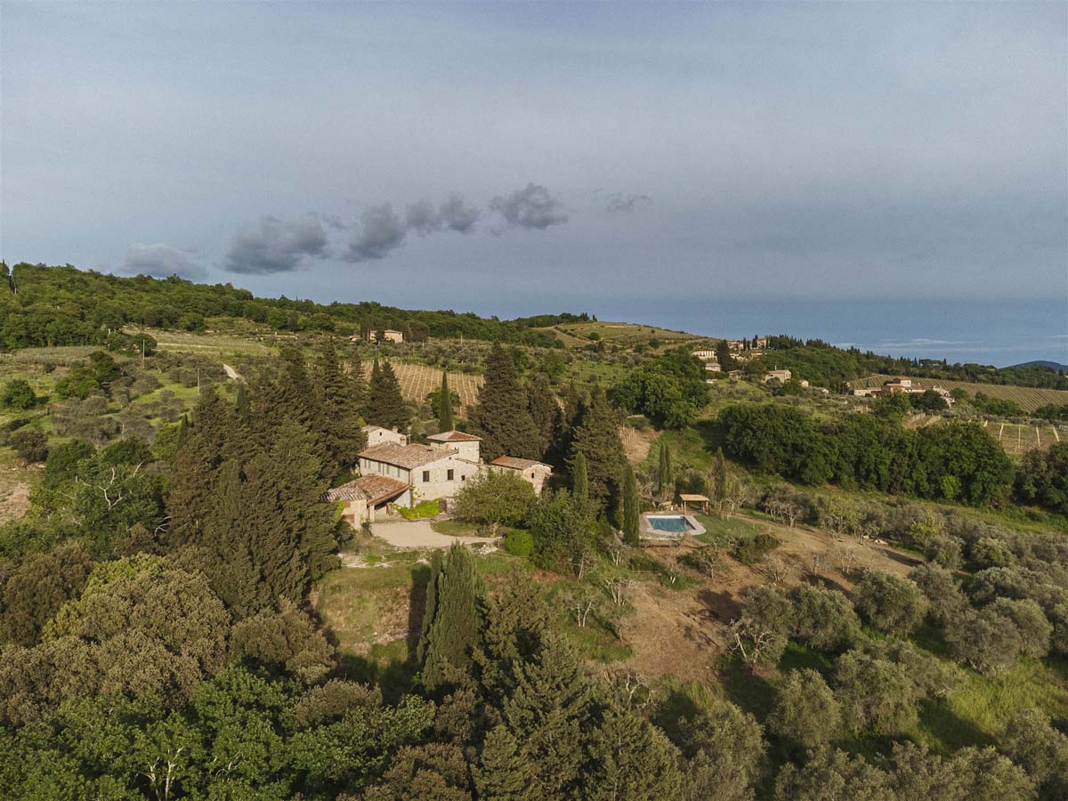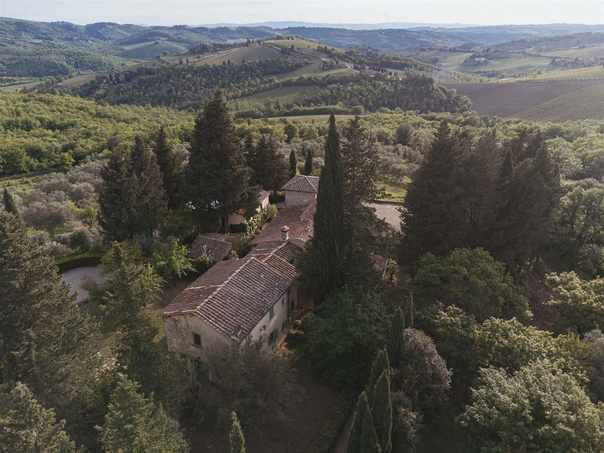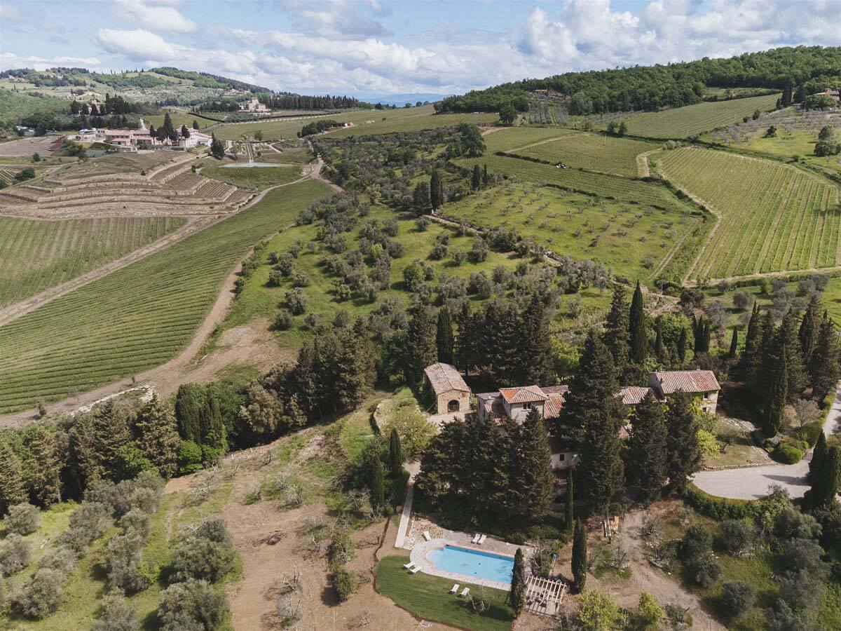 L’agritourisme se dresse au sommet d'une colline entourée de cyprès et d'oliviers, à environ 400 mètres d'altitude. Le domaine surplombe de magnifiques vignobles au cœur de la très connue région de Chianti. Compte tenu de sa position privilégiée, il bénéficie d'un climat très agréable en été, offrant des nuits fraîches même pendant les étés les plus chauds, sans avoir besoin de la climatisation.