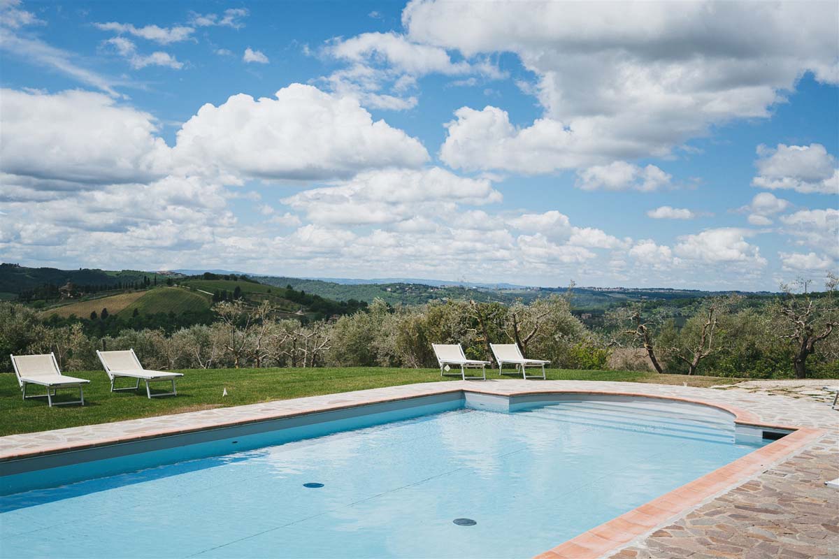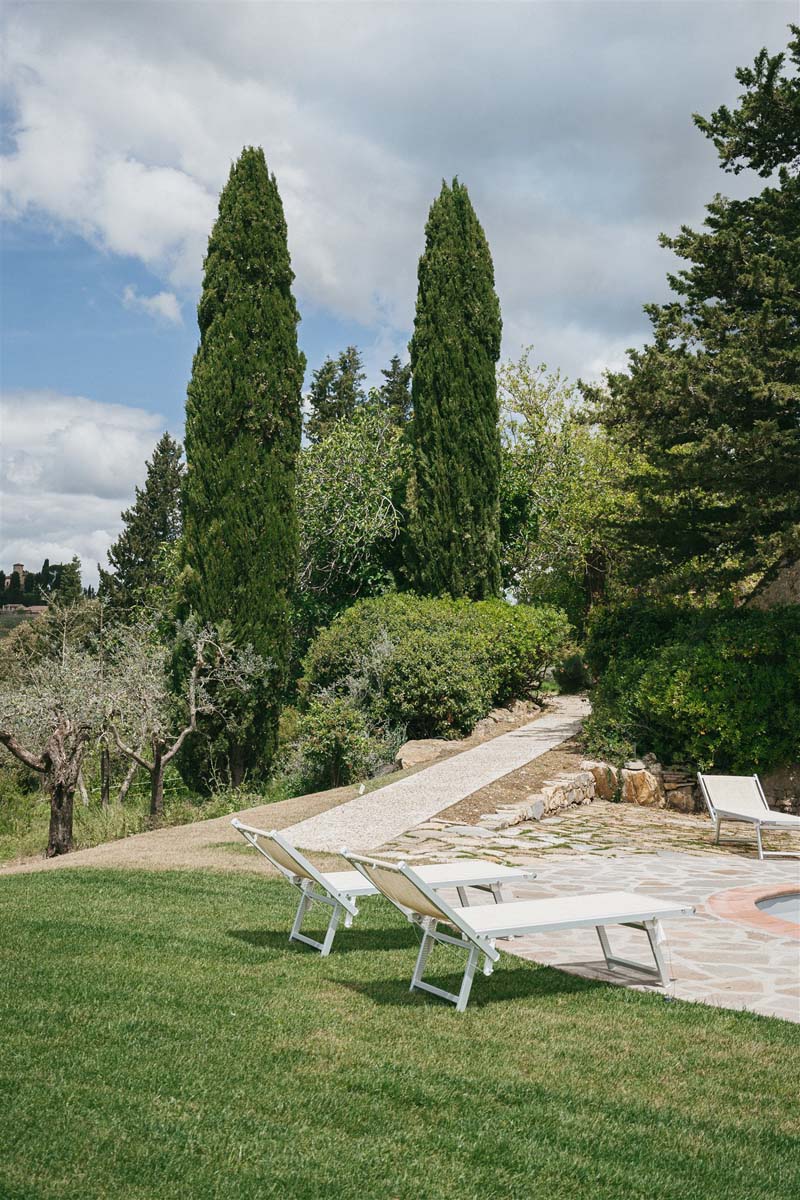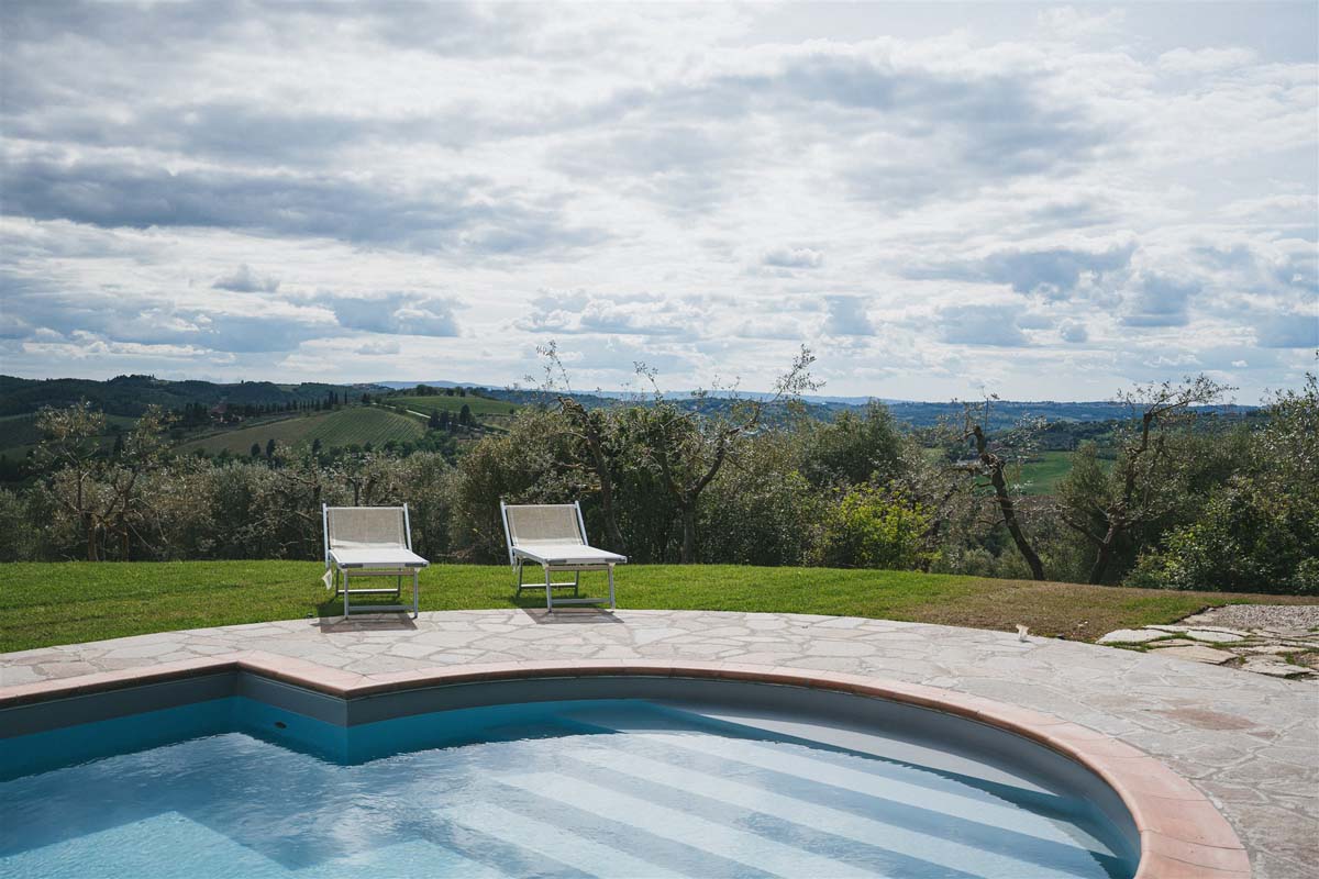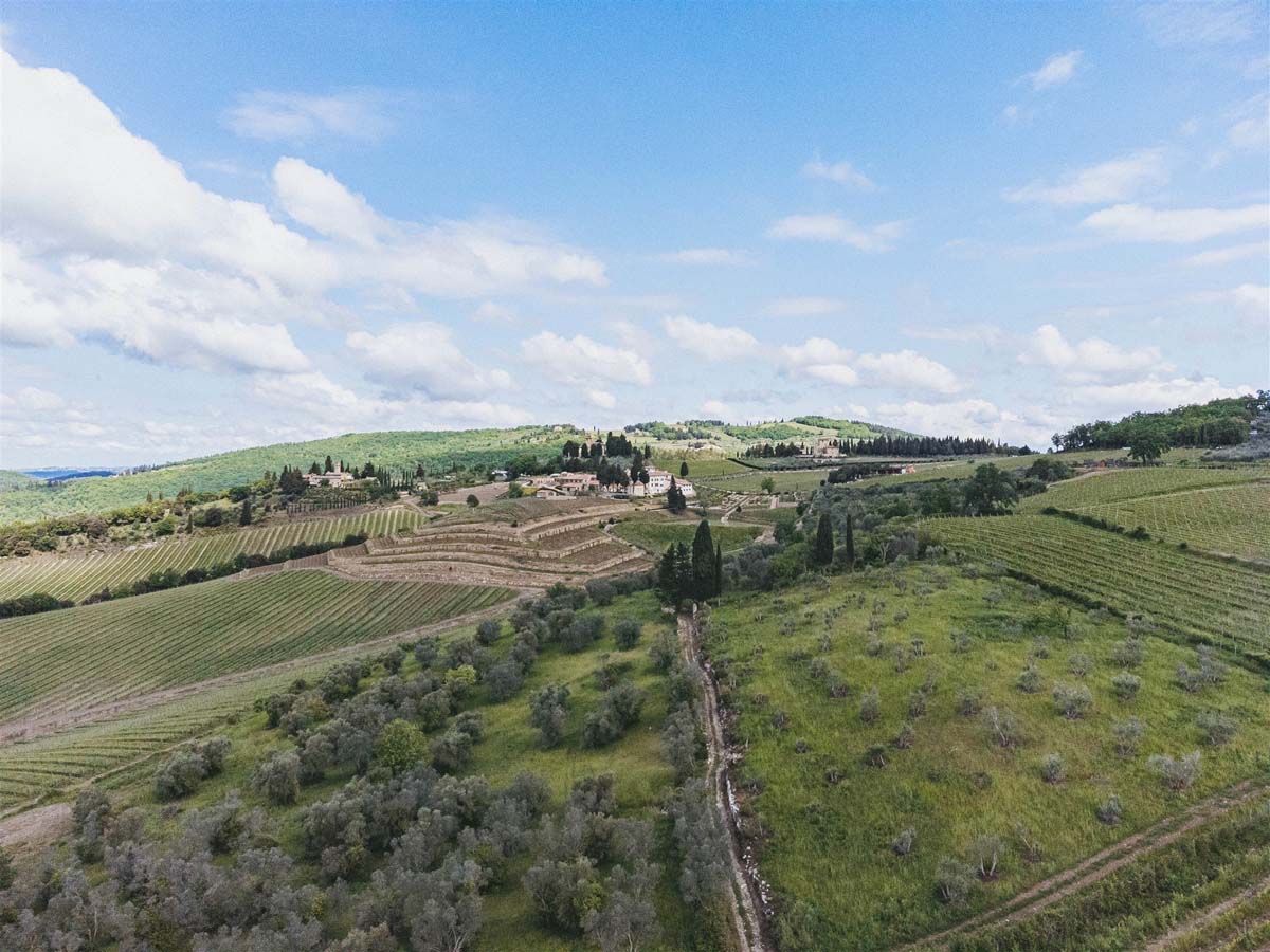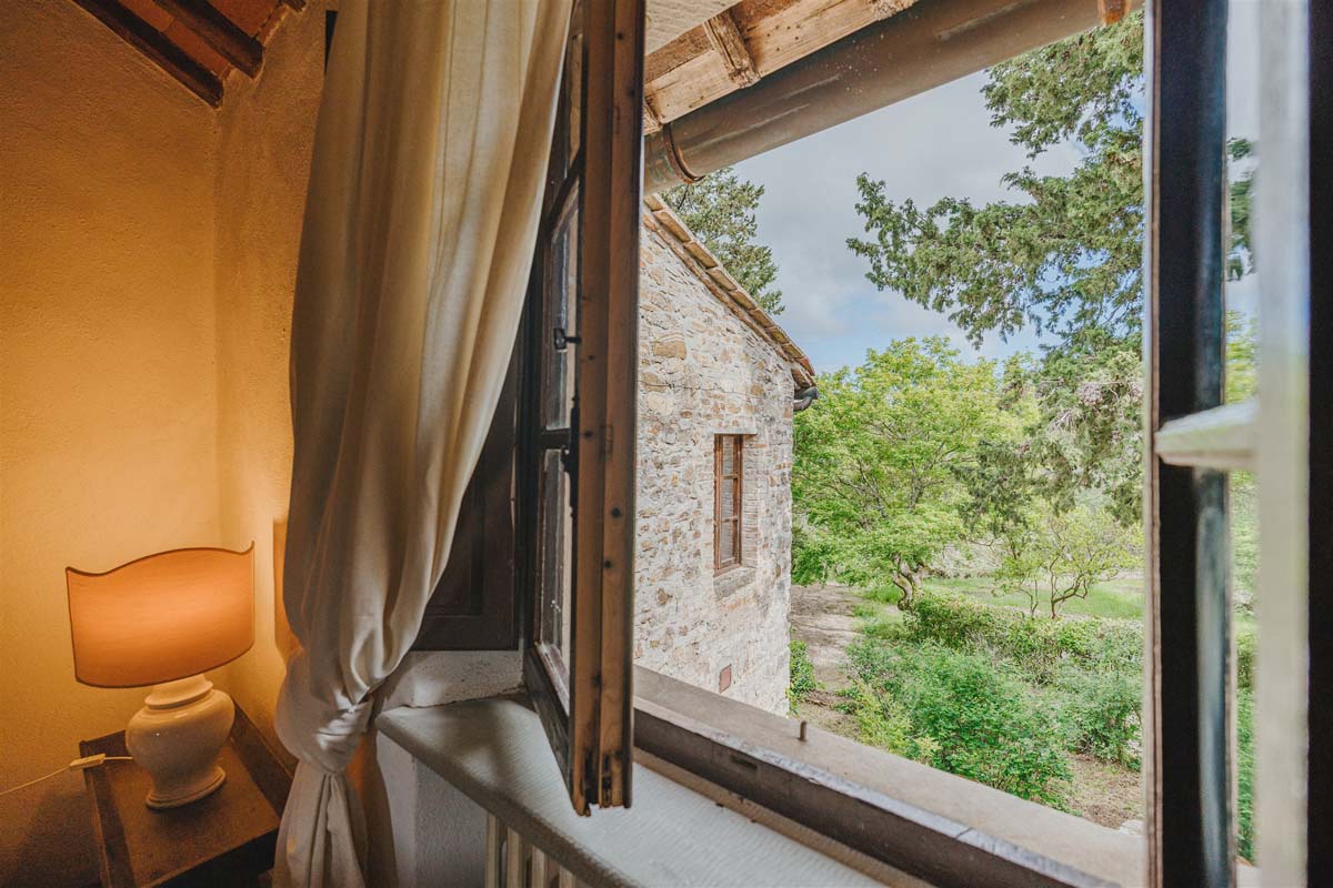 L’agritourisme se dresse au sommet d'une colline entourée de cyprès et d'oliviers, à environ 400 mètres d'altitude. Le domaine surplombe de magnifiques vignobles au cœur de la très connue région de Chianti. Compte tenu de sa position privilégiée, il bénéficie d'un climat très agréable en été, offrant des nuits fraîches même pendant les étés les plus chauds, sans avoir besoin de la climatisation.