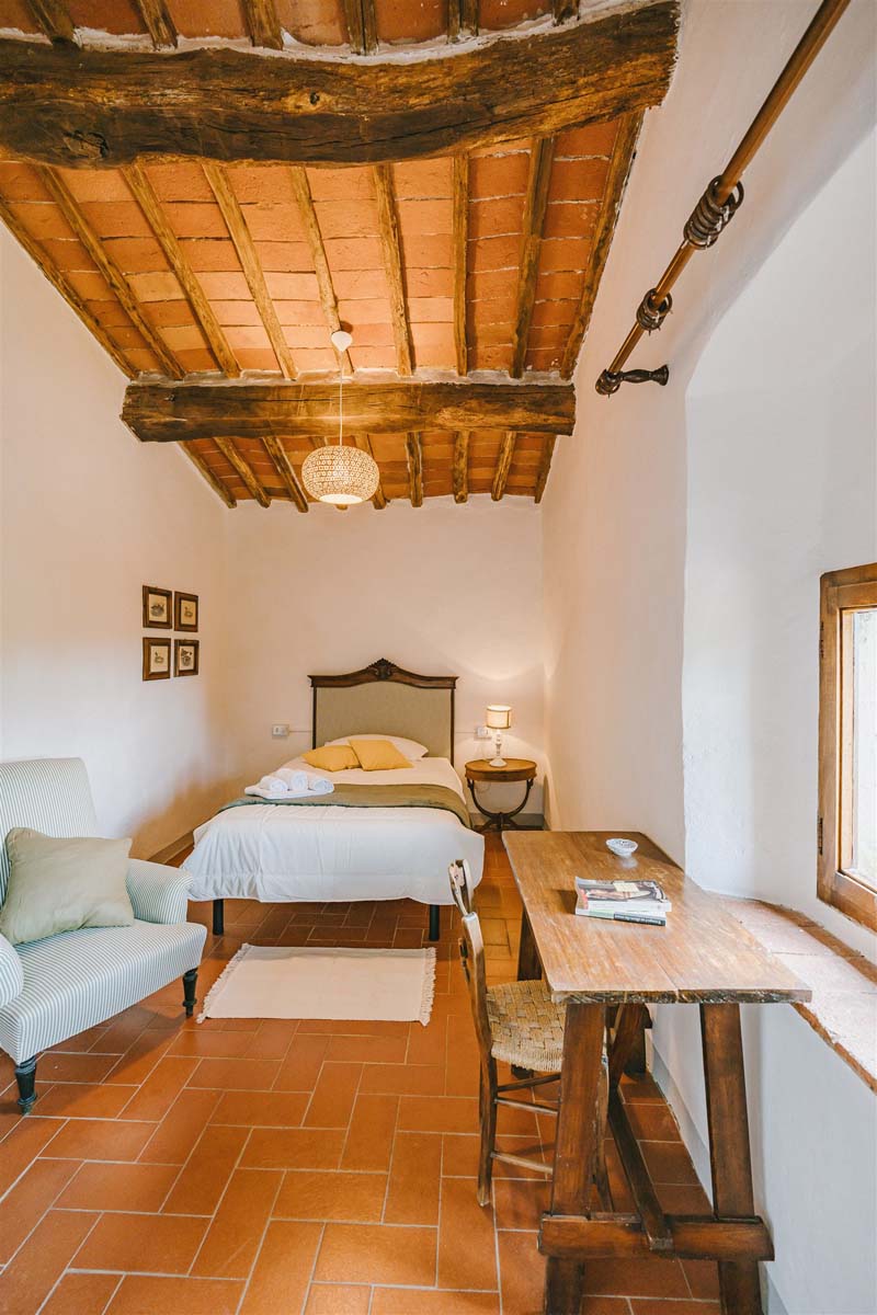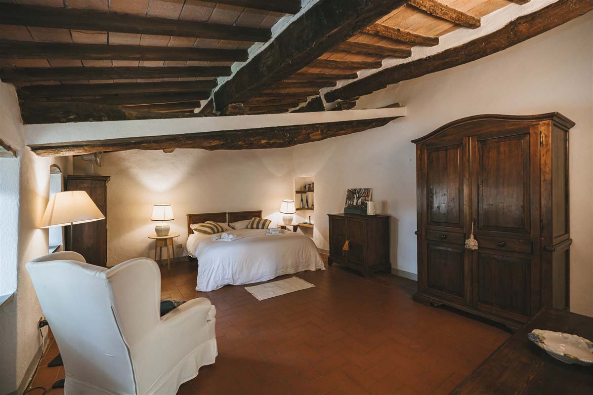 LOGGETTA (2 pers) : maison indépendante : 30m2 – 1 pièce – 1er étage : un unique espace avec une zone nuit (lit double), un coin cuisine, une sdb avec douche. Partageant le même balcon que Colonica, Loggetta est l'hébergement idéal pour un court séjour dans la région du Chianti tout en voyageant et en explorant la Toscane et ses multiples attractions.