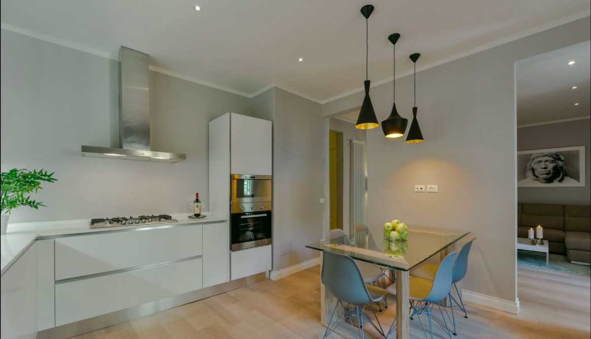 - Cuisine moderne entièrement équipée avec : gazinière, four, four à micro-ondes, grille-pain, bouilloire, réfrigérateur, cafetière, vaisselle…