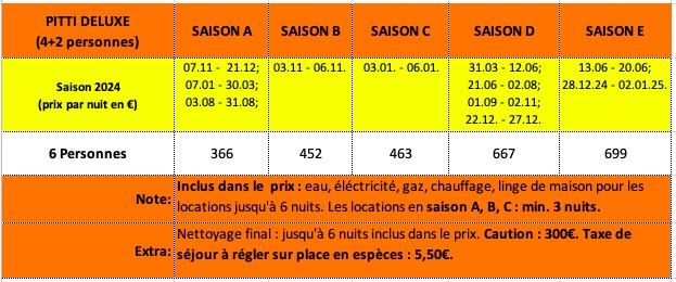 Taxe de séjour à régler sur place en espèces au moment du check-in : 5,50€ par personne par nuit. Les enfants de moins de 12 ans gratuit.