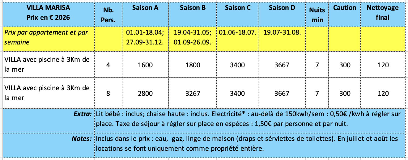Les locations pour les mois de juillet et août se font uniquement à la semaine.