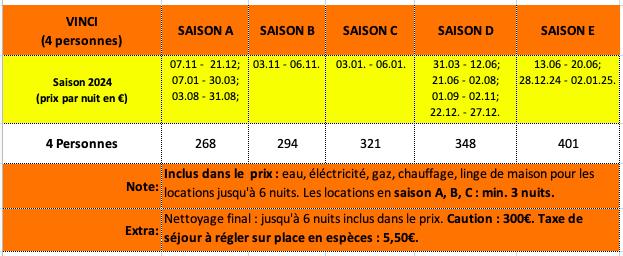 Taxe de séjour à régler sur place en espèces au moment du check-in : 5,50€ par personne par jour pour un maximum de 7 jours. Les enfants de moins de 12 ans gratuit.